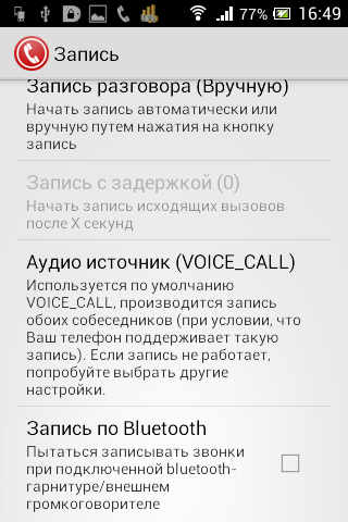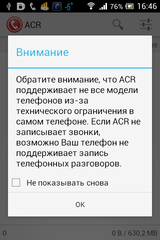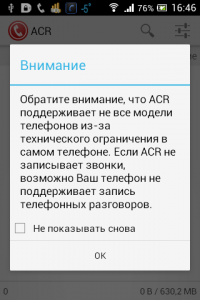 Важно! Если качество записи вас не устраивает (на некоторых аппаратах может быть плохо слышно собеседника), не используйте параллельно с ACR другие аналогичные программы, пробуйте разные аудиоформаты, чтобы найти наилучший вариант.
