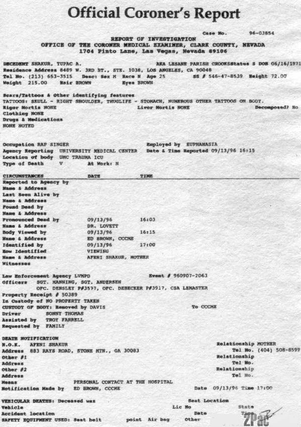 заключение о смерти 2 Pac