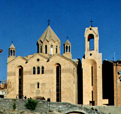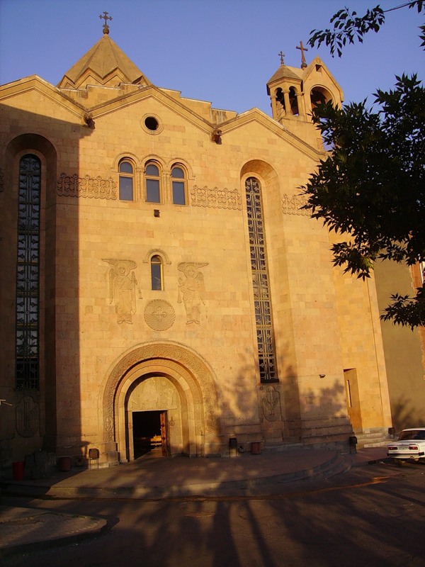 Огромный Кафедральный Собор – состоит из трех церквей: Собор (Главная Церковь) с 1700 местами и Часовни Царя Святого Трдата III и Царицы Святой Ашхен (оба с 150 местами). Эти две королевские фигуры были наиболее значительными помощниками Святого Григория в преобразовании Армении к Христианству.