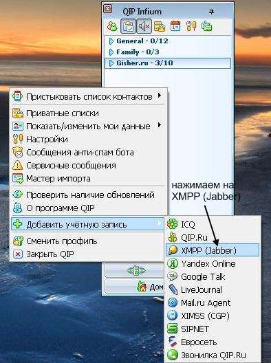 если же нет, тогда добавить учётную запись (тип джаббер), впиши