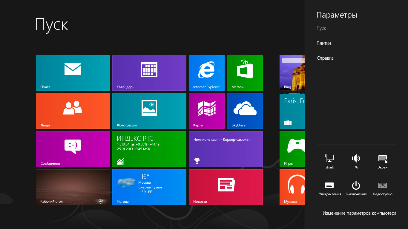 Заходим: Параметры - Изменение параметров компьютера.