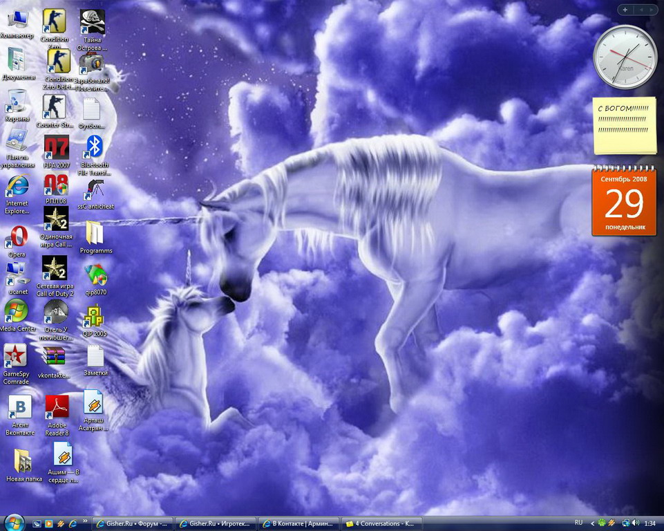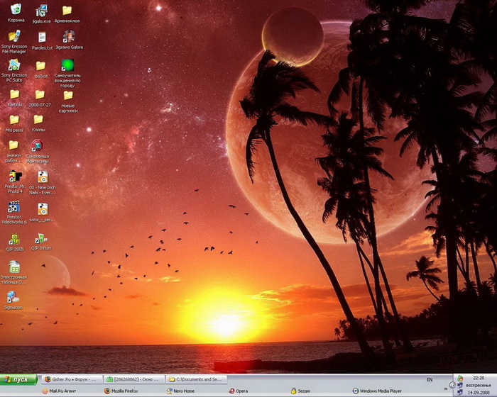 А вот и мой рабочий стол) только я обои часто меняю, картинки сейчас отправлю в альбом "Обои для рабочего стола")