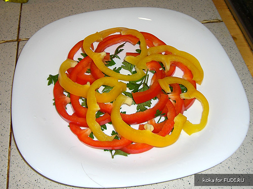 холодильник на 12 часов, перед подачей на стол по краям салата