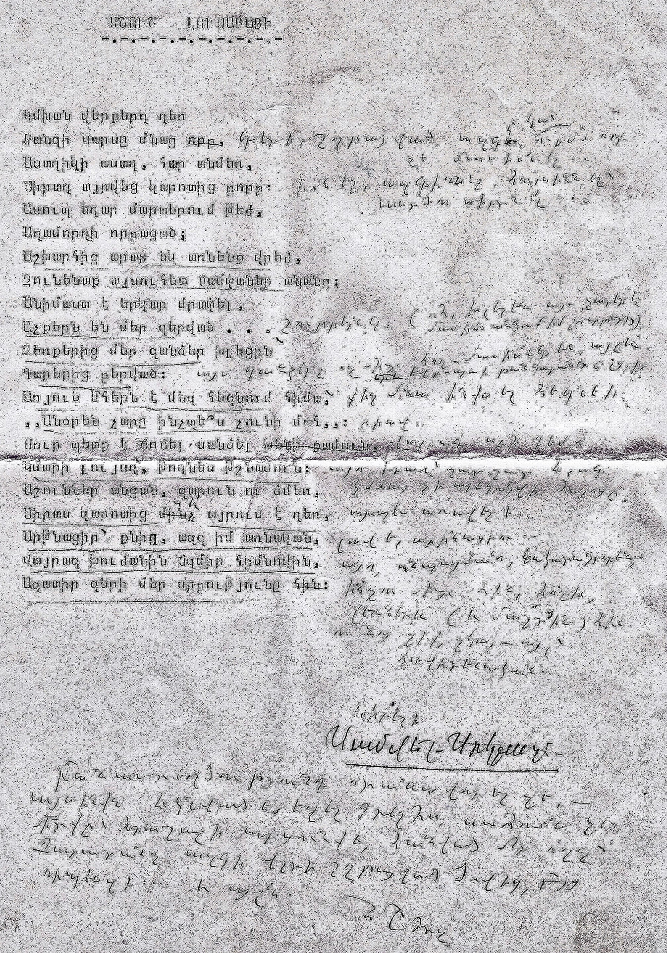 –Ընկերդ՝ Պատվականը, լավ րնկեր կերևա, ճիշա կըսեիր։ Հիմի ինձի ըսա ՝ ի՛նչ նոր բան ունես գրած։