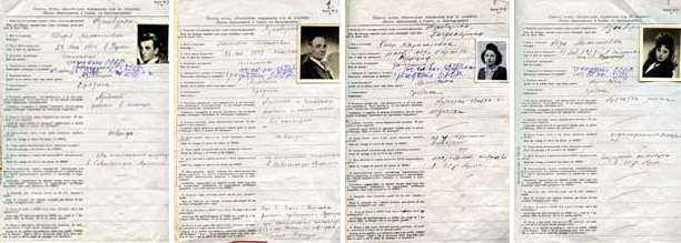 Կից սյունակներում ներկայացնում ենք ընտանիքի 4 անդամների՝ հոր, մոր, դստեր եւ որդու ռուսերեն լեզվով լրացված փաստաթղթերի լուսապատճենները, առավել՝ Քնար եւ Աիդա Ազնավուրյանների հայերեն ձեռագիր դիմումները Ներգաղթ կոմիտեին՝ վերծանված մեր կողմից: Դժբախտաբար Մամիկոնի եւ Շառլի ձեռագիր դիմումները, եթե կան այդպիսիք, արխիվագետ Ա. Բադալյանին չի հաջողվել հայտնաբերել պետարխիվում: