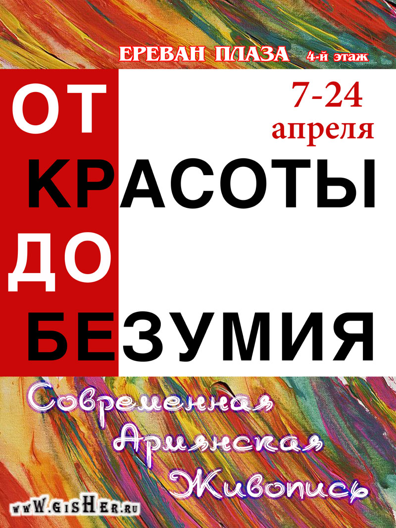 Мы рады сообщить Вам о том, что с 7 по 24 апреля 2011 г. на 4 этаже Торгового Центра “Ереван Плаза” состоится выставка современных армянских художников.