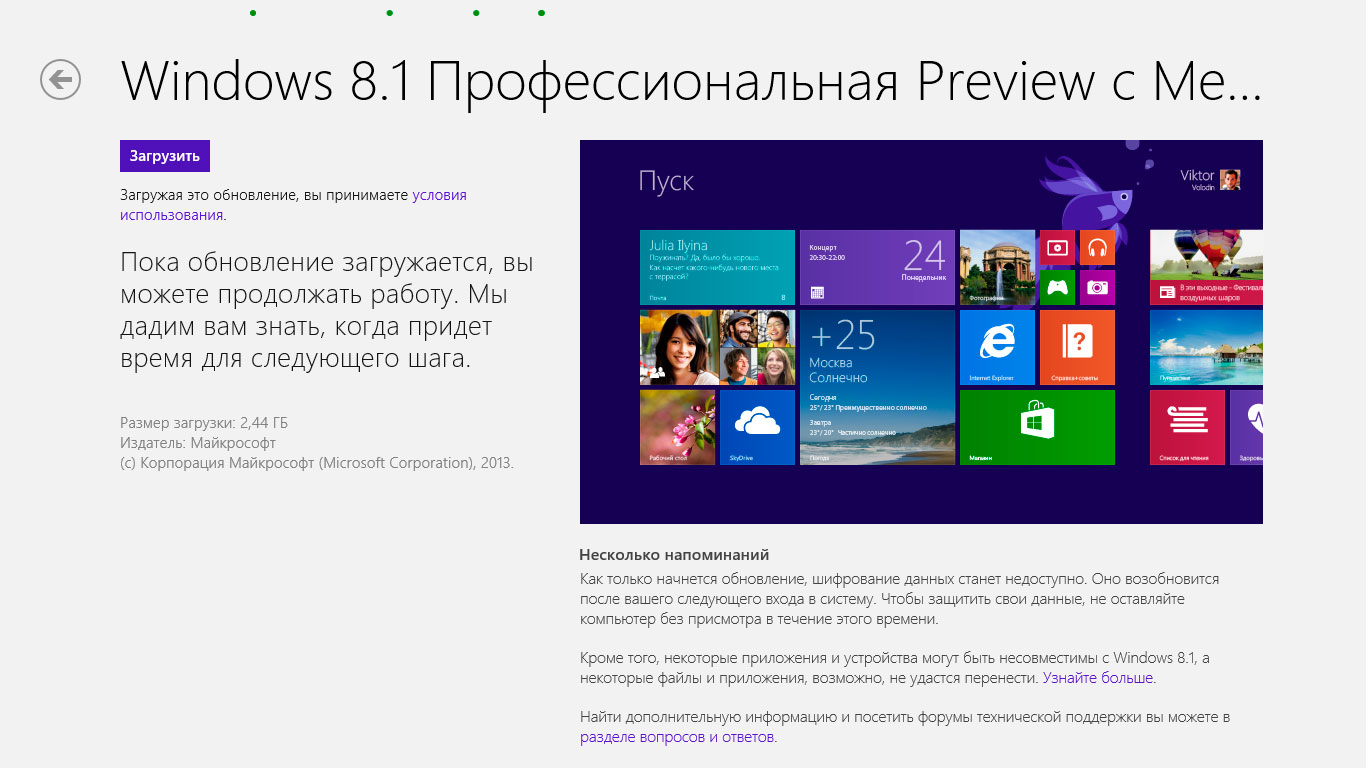 Есть предположения, что в Windows 8.1 может появиться новый режим загрузки. В этом режиме, сразу же после входа в систему, будет открываться рабочий стол, как это было в предыдущих ОС до Windows 8. Также в Windows 8.1 вновь появится кнопка «Пуск».